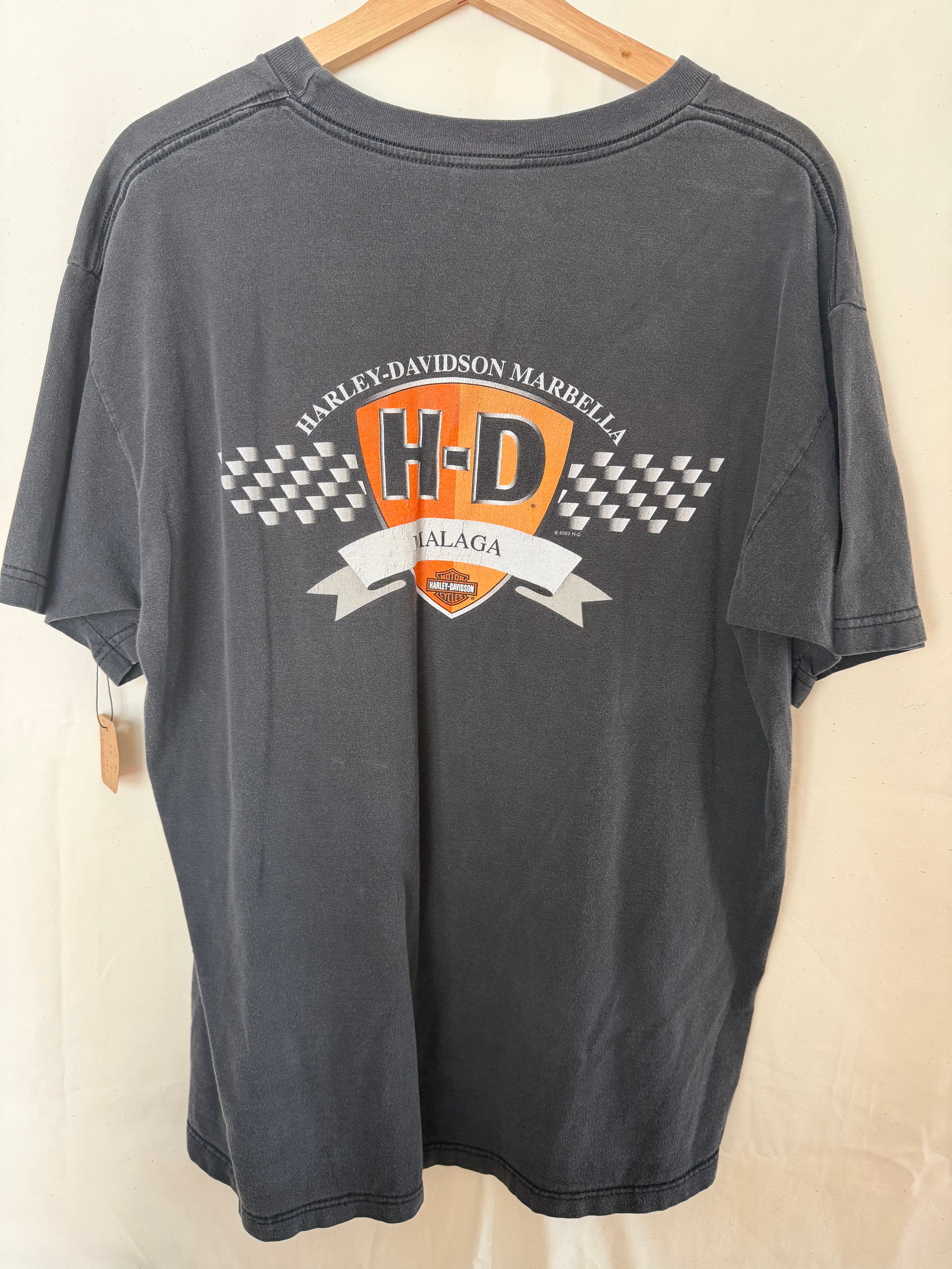 【希少スペイン製プリント】Harley-Davidson ハーレーダビッドソン Tシャツ マラガ スミクロ